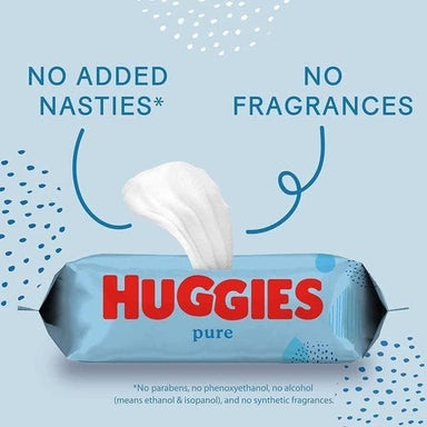 Description: Huggies Natural Care Wipes are made with skin-loving natural* fibres and infused with soothing Aloe Vera to gently cleanse and protect...