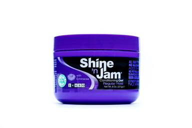 Description: Shine ’n Jam® Regular Hold Gel is a moisturizing, non-flaking styling gel that provides firm, non-greasy hold. Enhanced with Echinacea...
