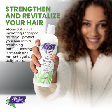 Description: AtOne Botanical Hydrating Shampoo gently cleanses the scalp and hair while maintaining natural moisture balance. Infused with botanica...