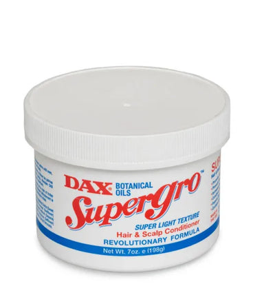 Description: DAX SuperGro is a nourishing hair and scalp conditioner formulated with a blend of natural botanical oils to restore moisture, shine, ...
