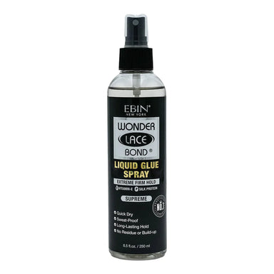 Description: EBIN NEW YORK Wonder Lace Bond Liquid Glue Spray provides a strong, all-day hold for lace wigs while remaining lightweight and quick-d...