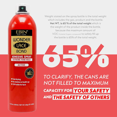 Description: EBIN NEW YORK Wonder Lace Bond Lace Melt Aerosol Spray melts lace for a natural, secure hairline. Enriched with Silk Protein, Vitamin ...