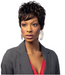 Stylised pixie crop style, with cuts and layers styled at the crown of this wig.