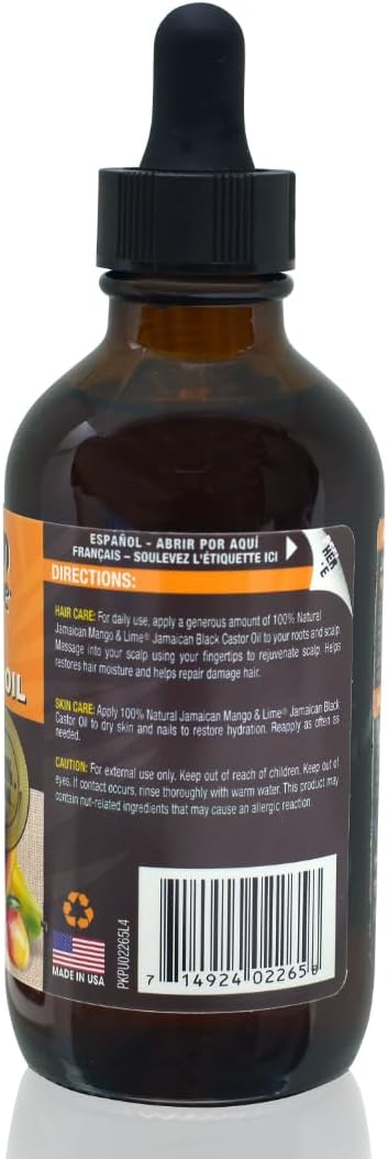 Description: Jamaican Mango & Lime® Peppermint Jamaican Black Castor Oil is a 100% pure, natural oil crafted from roasted Jamaican castor beans...