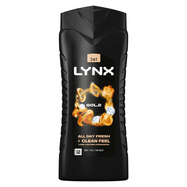 Description: Lynx Gold 3-in-1 Body Wash delivers an all-day fresh and clean feel for body, face, and hair. Infused with the rich scent of oud wood ...