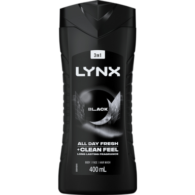 Description: Lynx Black 3-in-1 Body Wash is designed for men who want to stay fresh, clean, and confident all day. Formulated for body, face, and h...
