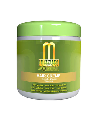 Description: Mazuri Original Olive Oil Hair Crème deeply nourishes and moisturizes dry hair and scalp. Enriched with olive and castor oil, it stren...
