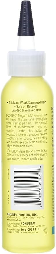 Description: Doo Gro Mega Thick Growth Oil is specially formulated to promote thick, strong, and healthy hair while repairing weak and damaged stra...