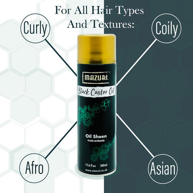 Description: Mazuri Black Castor Oil Sheen Spray adds instant shine and smoothness to any hairstyle. Infused with natural black castor oil and rich...