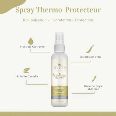 Description: Avlon Texture Release Heat Protector is a lightweight, multi-tasking spray designed to shield hair from heat damage while making detan...
