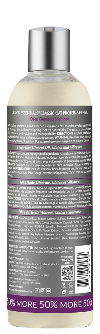 Description: Experience a refreshing, deep clean with Design Essentials® Oat Protein & Henna Deep Cleansing Shampoo. Infused with a nourishing ...