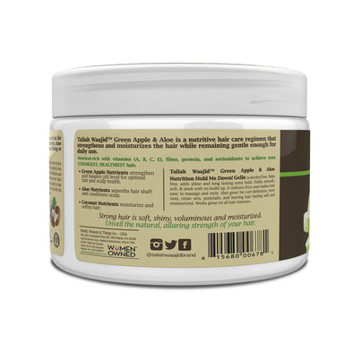 Description: Taliah Waajid™ Green Apple & Aloe Nutrition Hold Me Down! Gel is a strengthening and moisturizing hair care product designed to pr...