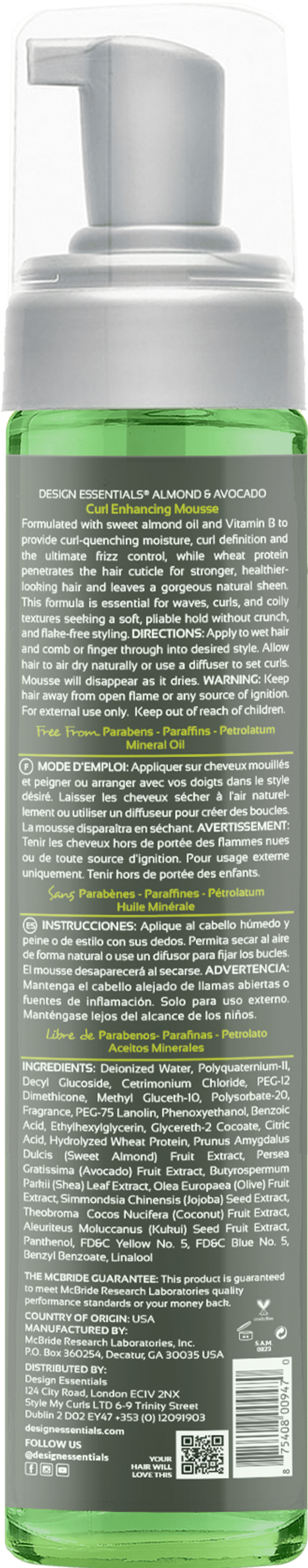 Bring your curls to life with Design Essentials® Natural Almond & Avocado Curl Enhancing Mousse a lightweight, non-greasy foam that boosts curl definition, tames frizz, and adds shine. Infused with nourishing almond and avocado oils, this mousse hydrates and conditions while enhancing natural curl patterns. Perfect for wash-and-gos, twist-outs, or roller sets, it works on all curl types to give you soft, defined, and touchable curls with every use.